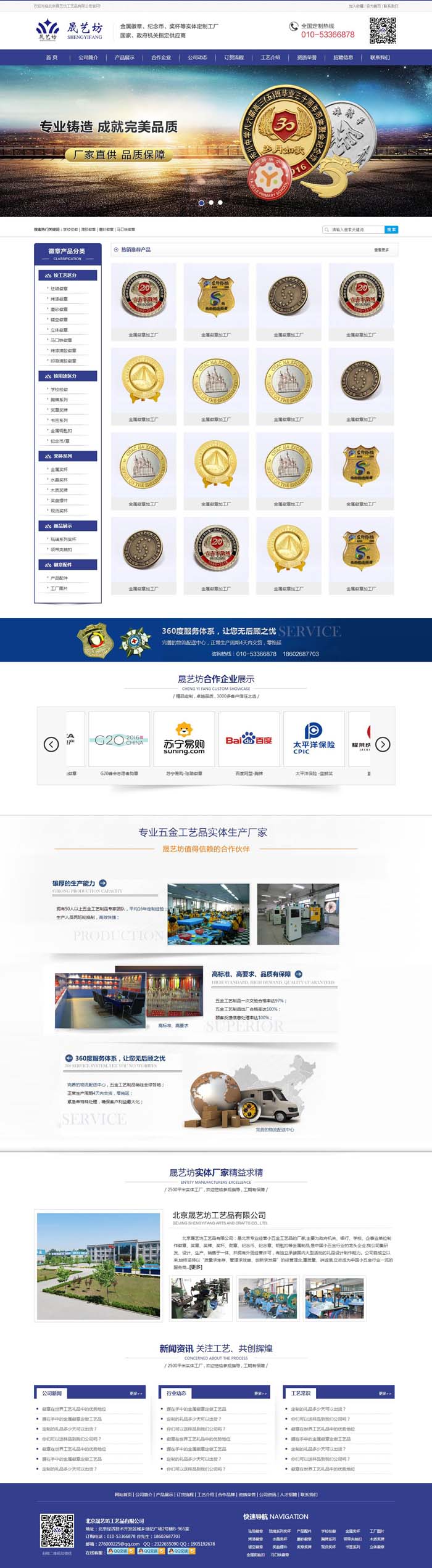 北京藝坊工藝品有限公司:是北京專業(yè)經(jīng)營小五金工藝品的廠家,主要為政府機關(guān)、銀行、學(xué)校、企事業(yè)單位制作徽章、獎?wù)?、獎牌、獎杯、勛章、紀(jì)念幣、紀(jì)念章、鑰匙扣等金屬制品,是中國小五金行業(yè)的龍頭企業(yè).我公司集研發(fā)、設(shè)計、生產(chǎn)、銷售于一體、并擁有外貿(mào)經(jīng)營許可,有獨立承接國內(nèi)大型活動的禮品設(shè)計制作能力。