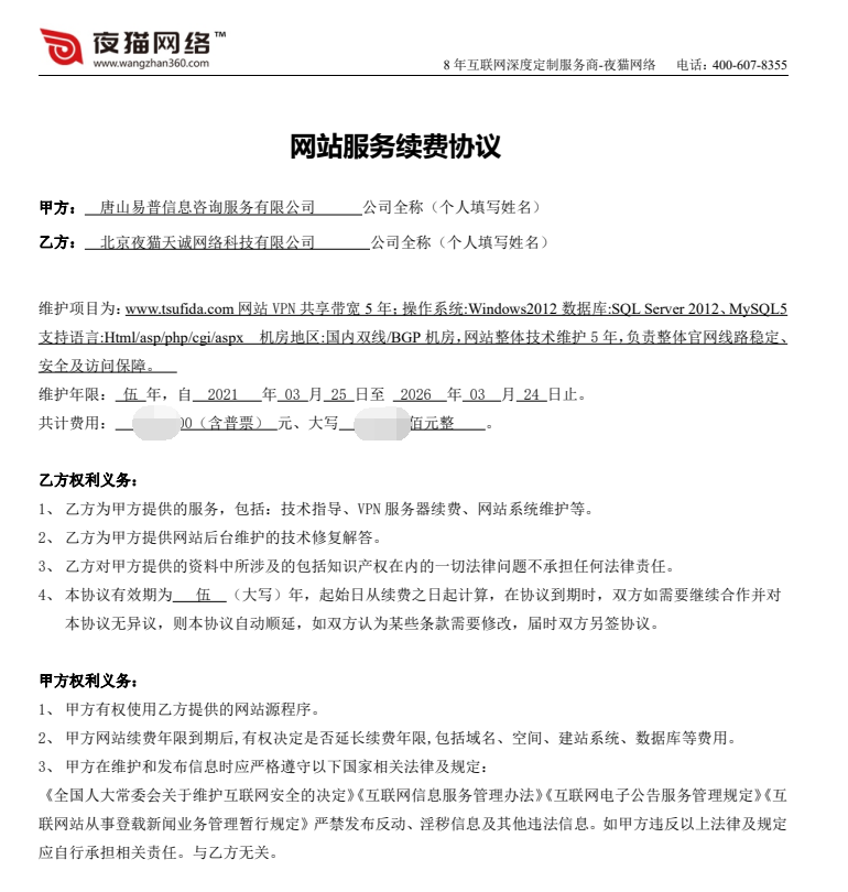 用友軟件唐山營銷中心與網(wǎng)站建設(shè)夜貓網(wǎng)絡(luò)從12年開始合作,截止目前已合作8年的時間,2021年用友軟件唐山營銷中心與我司再次續(xù)簽5年的合作,到2026年,非常感謝田經(jīng)理對我們的信賴和長期的支持~